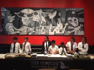This week’s field trip was the BEST!! Friday, for our off site day, we were treated to lunch and expert sushi training by the head Sushi chefs of The Cowfish. It was by far the most amazing experience these guys and girls have had in a restaurant! The owners planned a special Academy only dining experience, hands on expert training to make their own sushi rolls for lunch, and additionally provided lunch for each of the staff and students too-as well as blessing us with their time to hang out with us and create an experience we will never forget!